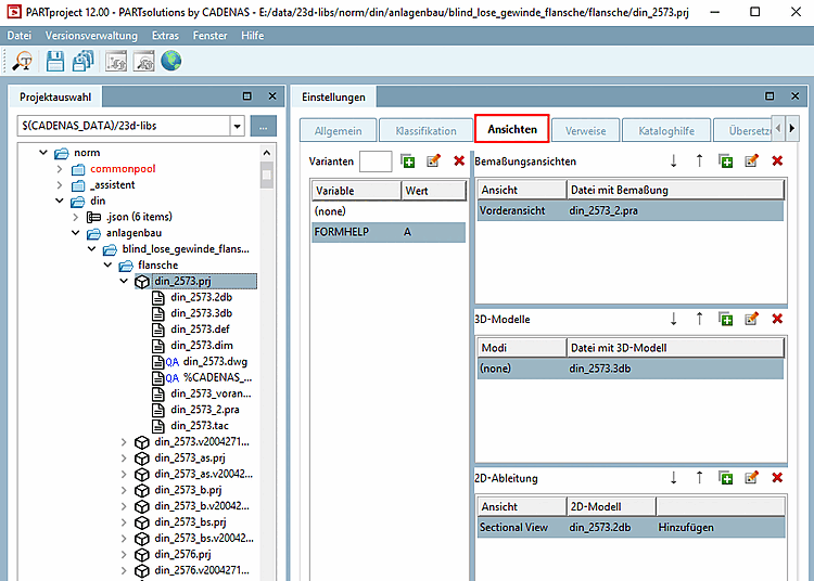 Specify dimension views (.pra, .bmp, .tif ) here that are to be displayed later in the PARTdataManager technical views [Technical views] docking window.