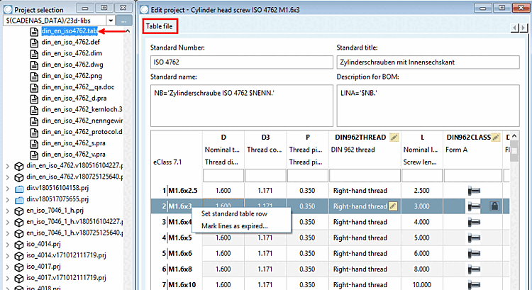 As soon as you select a * .tac or * .tab file in the directory tree on the left under Project selection, the tab page Table file is displayed on the right under Edit project.