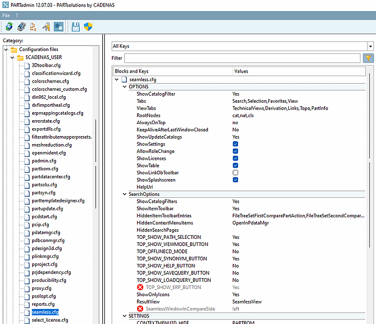 Further settings can be optionally set administratively via $CADENAS_USER/seamless.cfg can be set administratively. See Section 1.7.4.9, “seamless.cfg