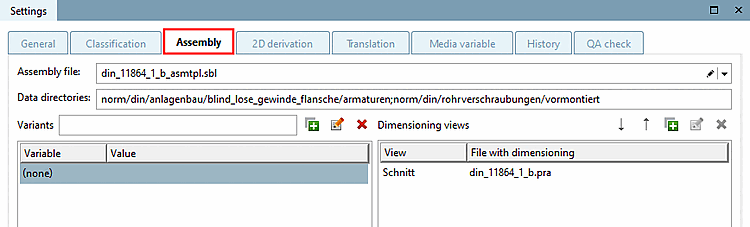 Dimensioning [Dimensioning views] views: Files that show assembly dimensions must be specified in the Dimensioning views field.
