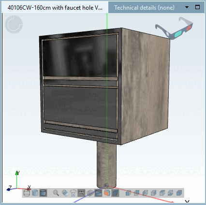 The following figure shows the part in 3Dfindit / PARTdataManager with texture over the entire part (PARTproject → Edit project → Tabbed page General → Render properties [Render attributes] → Render material ) and another texture on an additionally edited surface (PARTdesigner → Surface attributes... [Face attributes...] (context menu of a surface) → RenderMaterial )