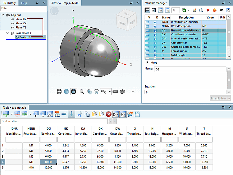 -> After confirming with OK, the "raw body" of the cap nut is displayed in three dimensions.