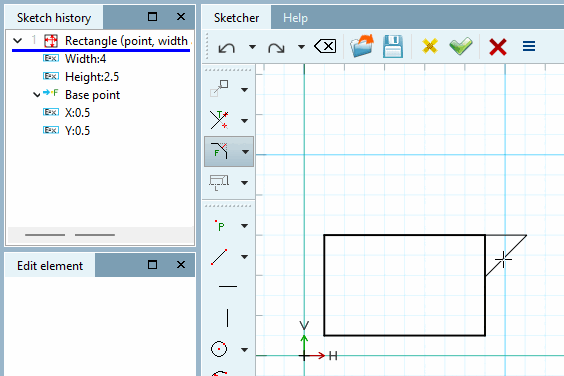 Select distance via point [Select distance by point]: Determine the exact indent length in the Edit element docking window.