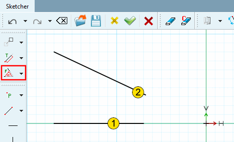 (The order makes no difference.) Placement outside the shape is possible, see section Center chamfer on 2 lines via distance to intersection [Chamfer centered at 2 lines defined by distance to intersection].