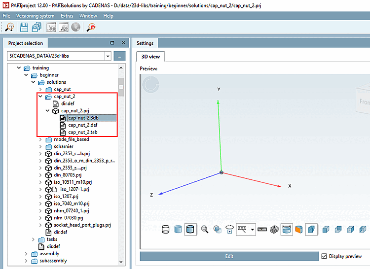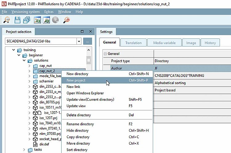1. Use the context menu command to create a new folder cap_nut_2 at any location (here as an example at training/beginner/solutions).