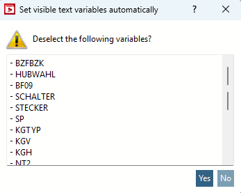 If other variables that are not visible variables have already been activated, a dialog box opens asking whether these variables should be deactivated.