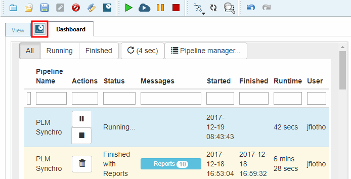 The dashboard provides you with detailed information on all processes (completed, canceled, running, failed).