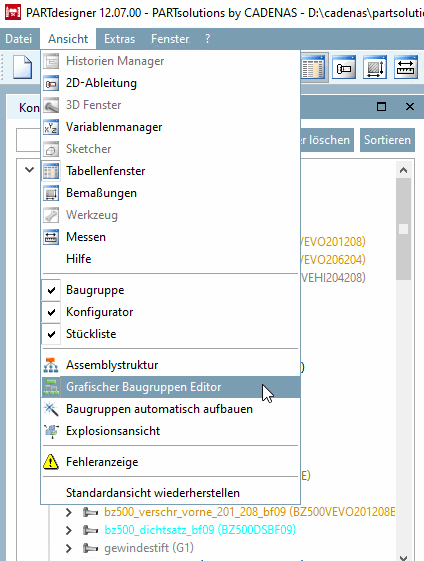 Click in PARTdesigner view [View] menu, click on Graphical assembly editor [Graphical Assembly Editor].