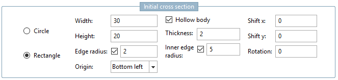 icon is visible, there are errors in this group. If you move the mouse pointer over the icon, a tooltip is displayed with the exact name of the error.Cross-section type: Choose between circle [Circle] and rectangle [Rectangle].