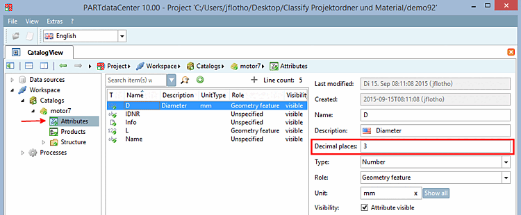 Both classes and attributes can be set as "visible" or "invisible". For classes, a transparent folder symbol then appears in PARTdataCenter