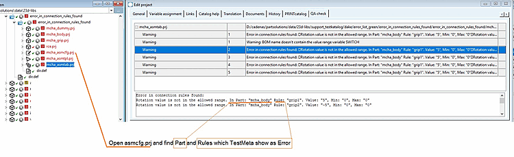 Solution: Check the linking rules of the configuration file (asmcfg) in the Properties [Rule properties] dialog box of the rule [Rule properties].