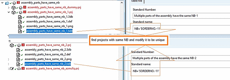 Dateiname der Projektdatei sollte eindeutig sein. Normnummern sollten eindeutig sein.