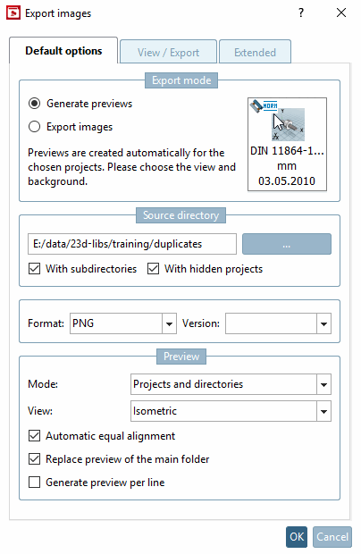 Solution: Set the target file to the CADENAS standard 400x400 and color depth 8 bit. This is ensured during automatic generation if you select the STANDARD option under Image size [Picture size].