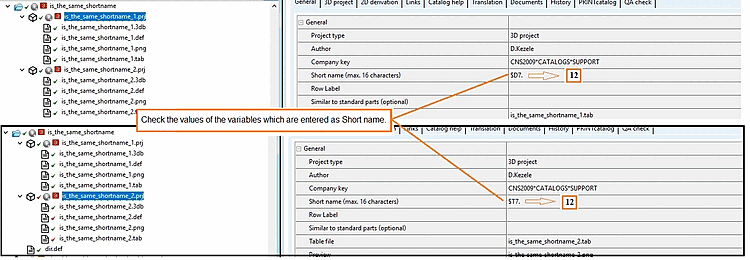 Solution: Check the table and find out in which rows the variables under Short name (max. 16 characters) have the same values.
