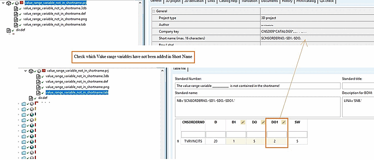 Solution: Include all value range variables in the project table under short name (max. 16 characters) [Short name (max. 16 characters)].