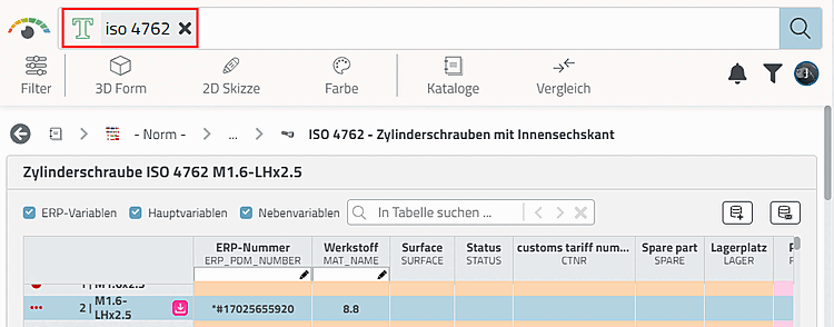For all top-level directories (norm, <catalog manufacturer>, own part catalogs), the index for the full-text search can be created for the selected catalog as a whole. The command is not available for sub-levels.