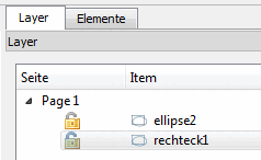 Open layer dialog: The Layers [Layer] dialog page is opened (as a docking or as a window, depending on the current status).The higher the entry in the list, the more to the front the layer of the element.
