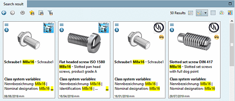 Previously, search term occurrences were marked in the detail and table view. Now the marking also takes place in the symbol view (tiles).