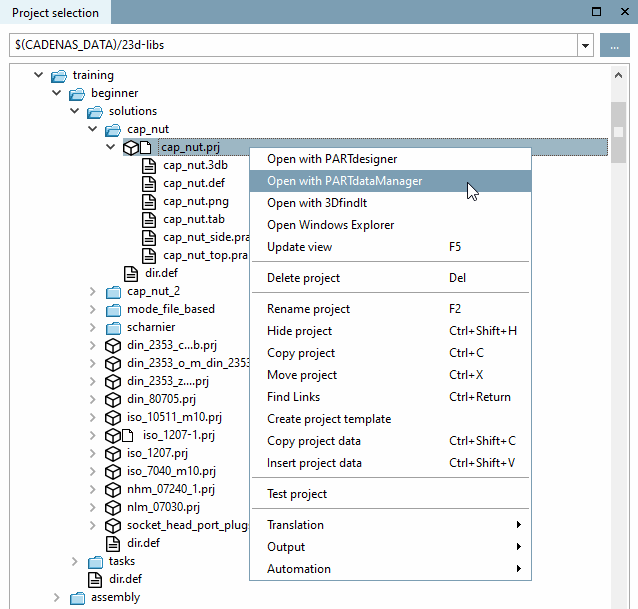 Click in PARTproject open with PARTdataManager [Open with PARTdataManager] in the context menu of the desired project.
