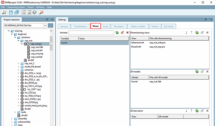 For the training example, the *.pra files Detailed information on creating *.pra files can be found under Section 5.11.2, “ Create and import/convert dimensioning views externally ” in eCATALOG 3Dfindit. | |