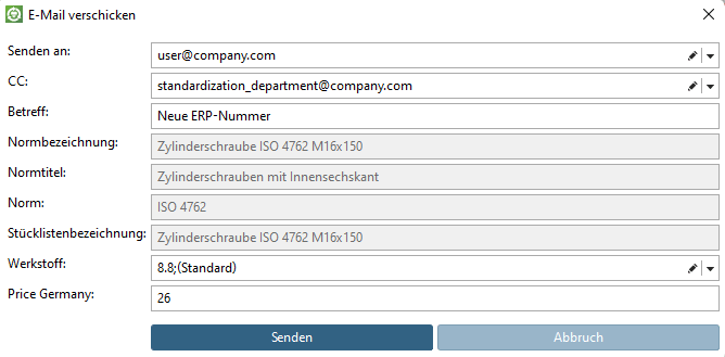 The keys "SENDTO", "SENDFROM", "SUBJECT", "SERVER" are not normally used at this point.