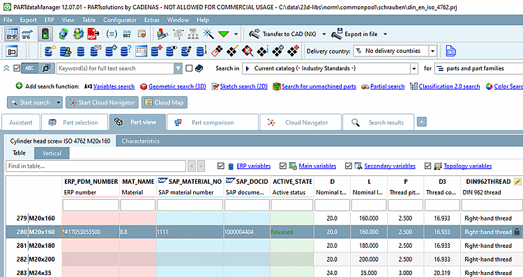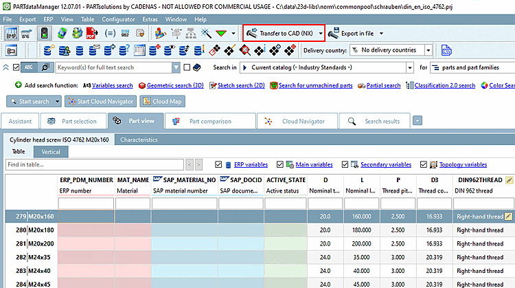 1. Select the desired table row and click on Transfer to CAD [Transfer to CAD...]... to perform a part export.