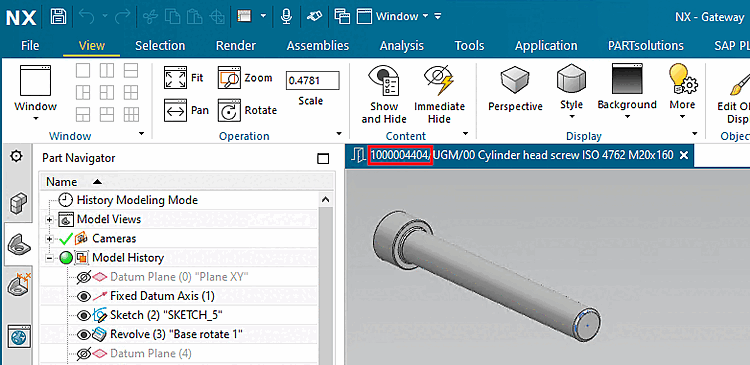 -> The view switches to CAD. The file name displayed contains the document ID (SAP_DOCID).