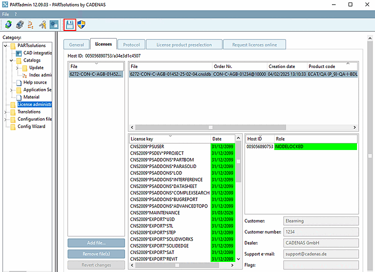 Import this via PARTadmin -> License management [License administration] category -> Licenses tab -> Add file [Add file...]... .