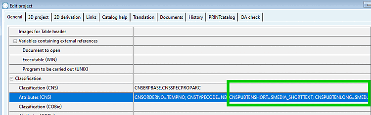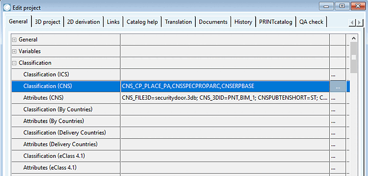Open the dialog area under Edit project -> General tab -> Classification (CNS) by clicking on .