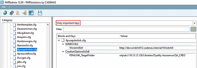 The most important keys will be displayed either when searching for the keyword "Simple" in the configuration file or when filtering in PARTadmin with Only important keys.