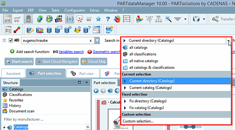You can hide the complete list field Suchen in [Search in] for the search path selection.