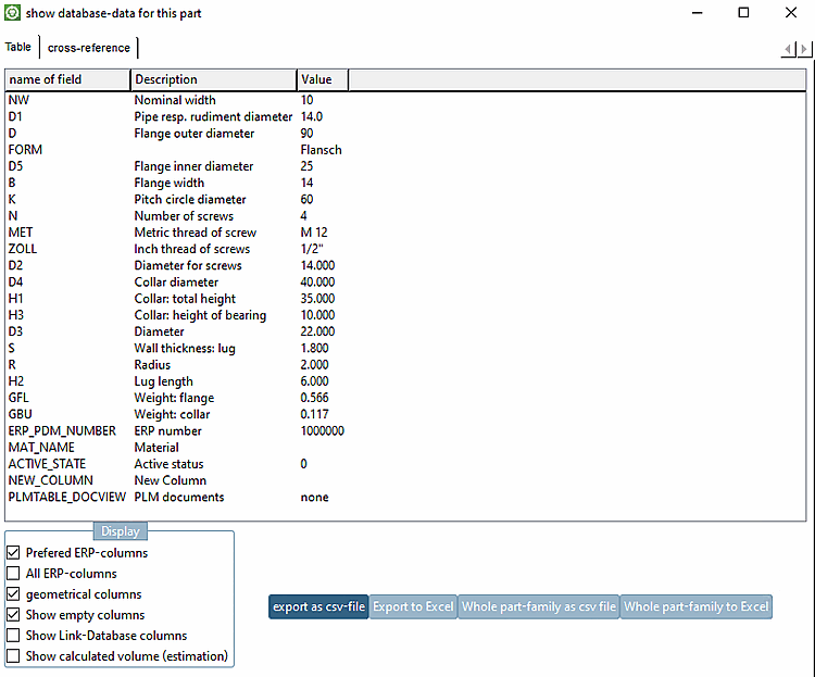 The script $CADENAS _SETUP/scripts/erp/show_dbdata .vbb must be activated in order to have the function Show database data for this part [show database-data for this part] available in the ERP toolbar (regardless of the view display ).