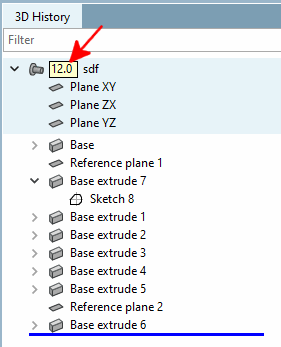 In addition, the history documents all design steps (features ) so that the respective component structure can be traced and possibly modified at a later date.