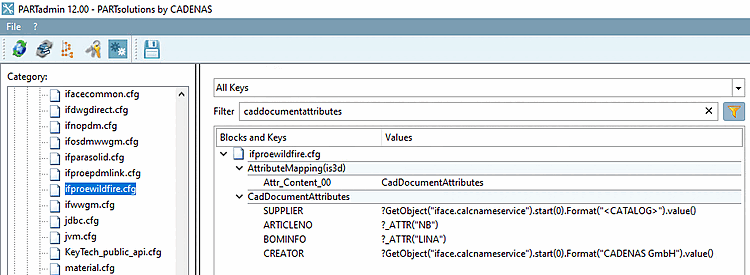 $CADENAS_SETUP/ifproewildfire.cfg.In block [CadDocumentAttributes], enter the desired attributes, which you want to export via CAD system to PDMLink.