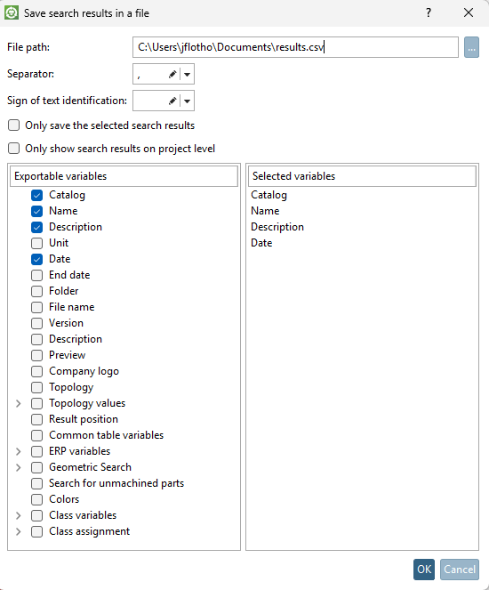 If you only want to save specific search results from the list, select them with the CTRL key and activate the option Save only the selected search results [Only save the selected search results].
