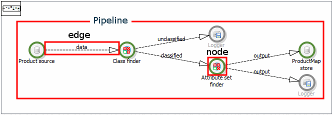 A process is illustrated by a pipeline. This consists of edges (data lines) and nodes (filters).