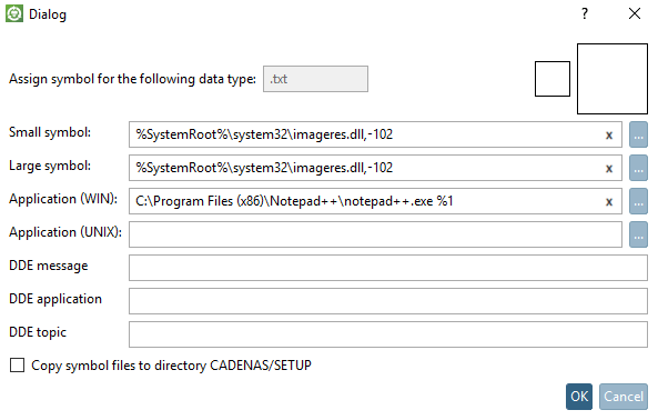Large symbol or small symbol [Small symbol]: Directory path in which the respective symbol for this file type is stored.