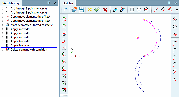 To visualize the abbreviated view [Shortened view], insert a sketch with a "cosmetic drawing" on the same layer as the one used for the main sketch (here in the example Plane XY ).