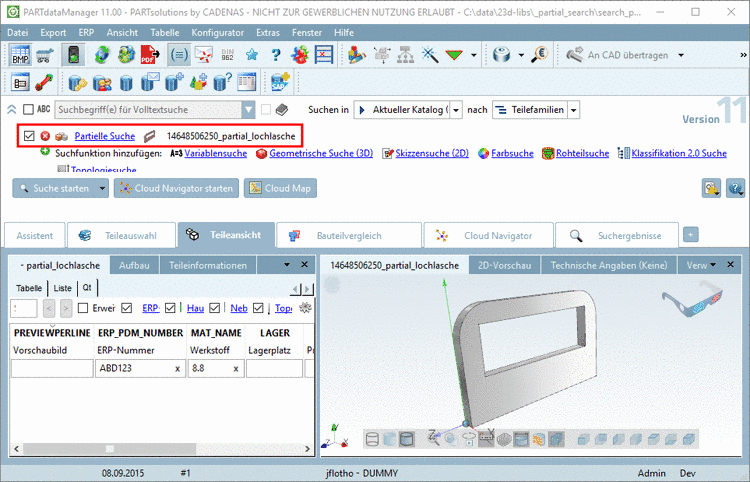 Please ensure that all used PARTsolutions materials are correctly mapped onto the respective CAD system materials.