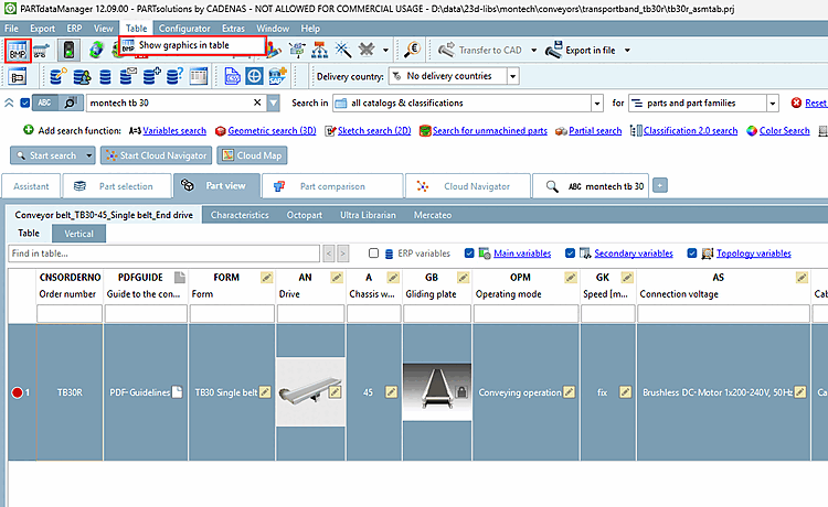 If graphics for table columns have been stored (e.g. for value range options or material/surfaces in ERP fields), these can be shown or hidden.