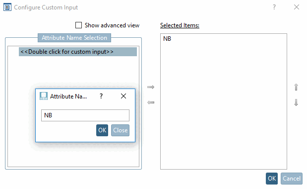 Double-click on the entry under Select attribute name [Attribute Name Selection] and enter the desired attribute name in the input field. If you confirm with , this is automatically entered under Selected elements.
