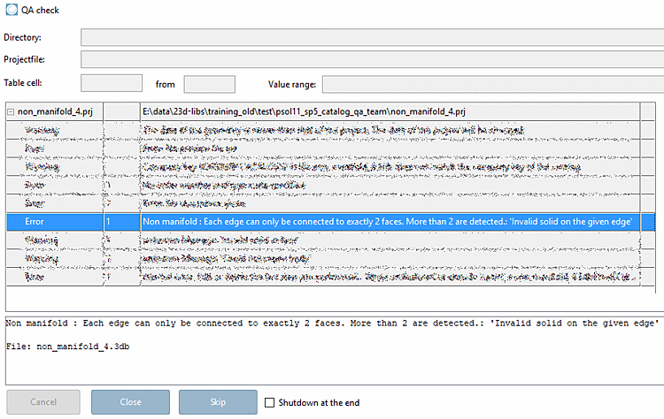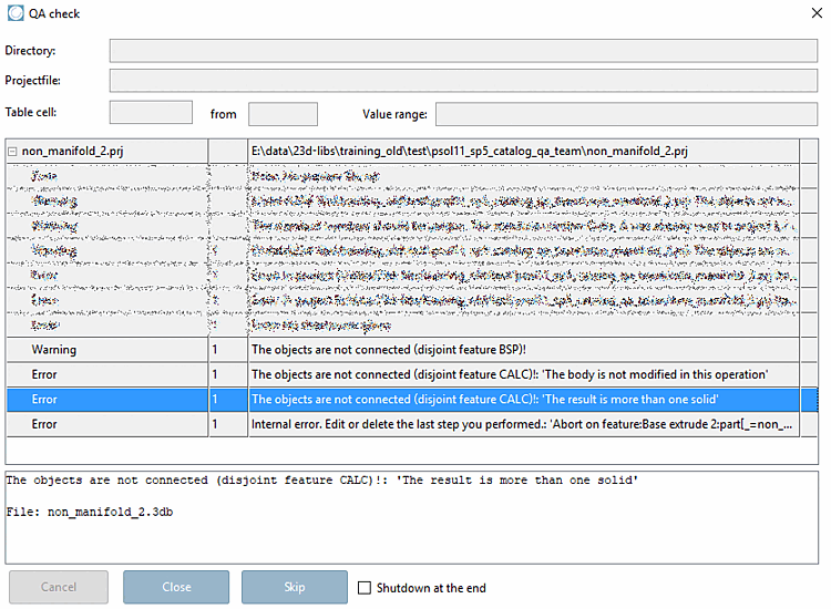 To check the integrity of a part, click on the Check part [Test part] button. The integrity must be ensured so that no error message appears in the QA check and ultimately an error-free export to the various CAD systems is guaranteed.