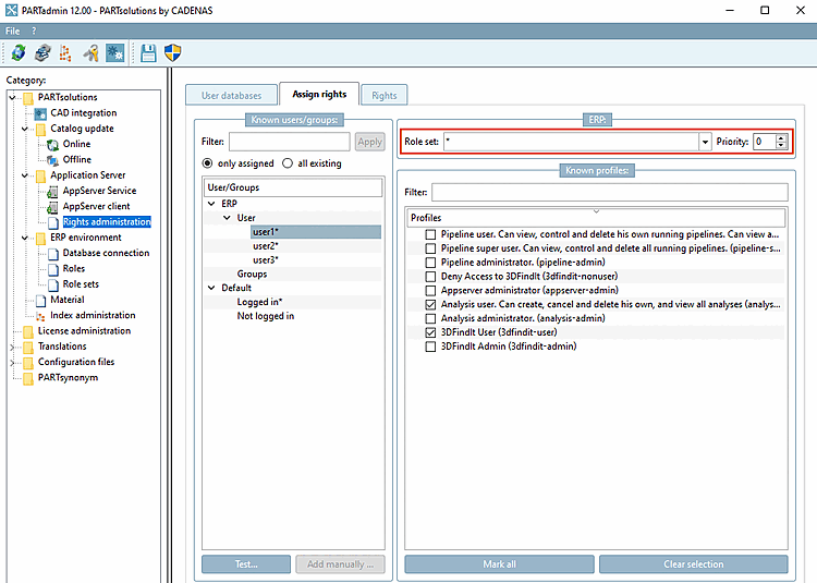 Activate the ERP (plinkusers) option in PARTadmin -> Rights management [Rights administration] category -> User databases tab page and create users.