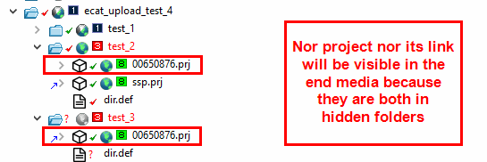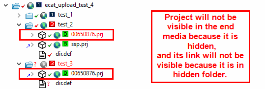 not visible (although not hidden = black font), as its parent directory is hidden (red font)Original project and link project