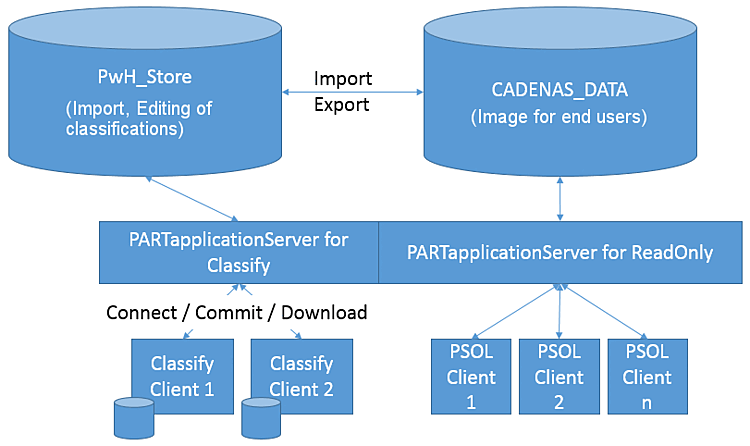 The catalog is imported from $CADENAS_DATA into the Appserver (PARTwarehouse Store) and now can be edited by different users.