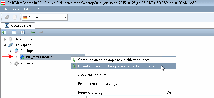 When PARTdataCenter is started, the connection to the server must be established. Otherwise you will not see any catalogs.