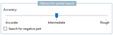 Accuracy: The accuracy [Accuracy] can be used to control whether the part found may deviate from the search part at all, or how large it may be. The accuracy is a mixture of size and shape.