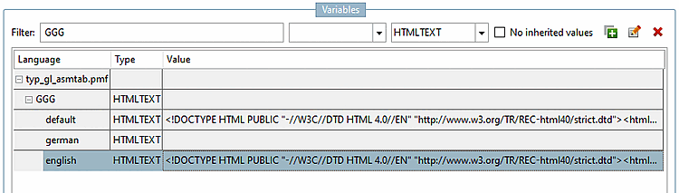 • Translation on the tabbed page Media variable