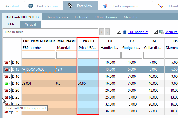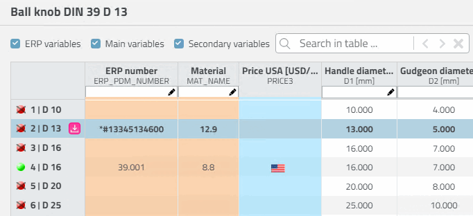 The status symbols for table rows are now as in PARTdataManager simply green/red