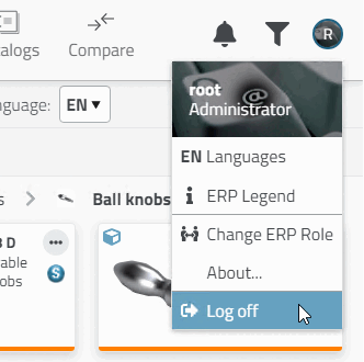 You were logged into the default role with your Windows user name when you initially logged in. In PARTdataManager you can see this immediately in the status bar, in 3Dfindit in the expanded login area.